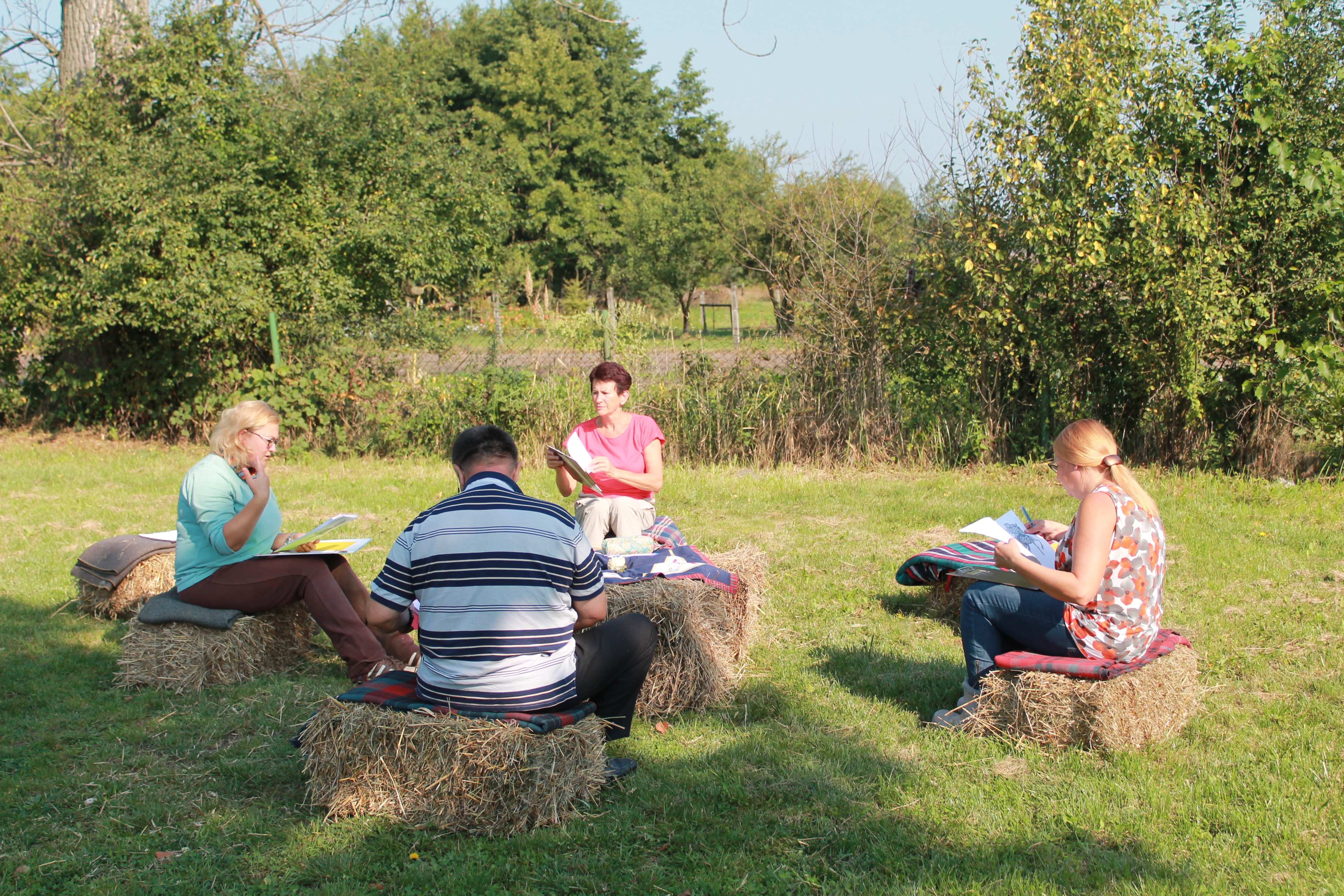 Doświadczenia z końmi - Pierwszy kontakt, Obserwacja stada, omówienia wrażeń z ćwiczeń na wygodnych snopkach ze słomy...
